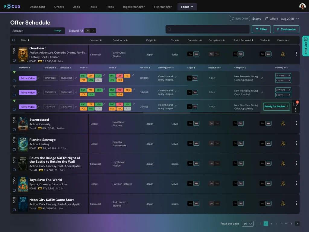 "Focus gives our teams real-time visibility across our entire content library by analyzing programming strategy and aligning it with inventory availability. This drives our localization planning, informs the overall content delivery process, and optimizes operational costs."