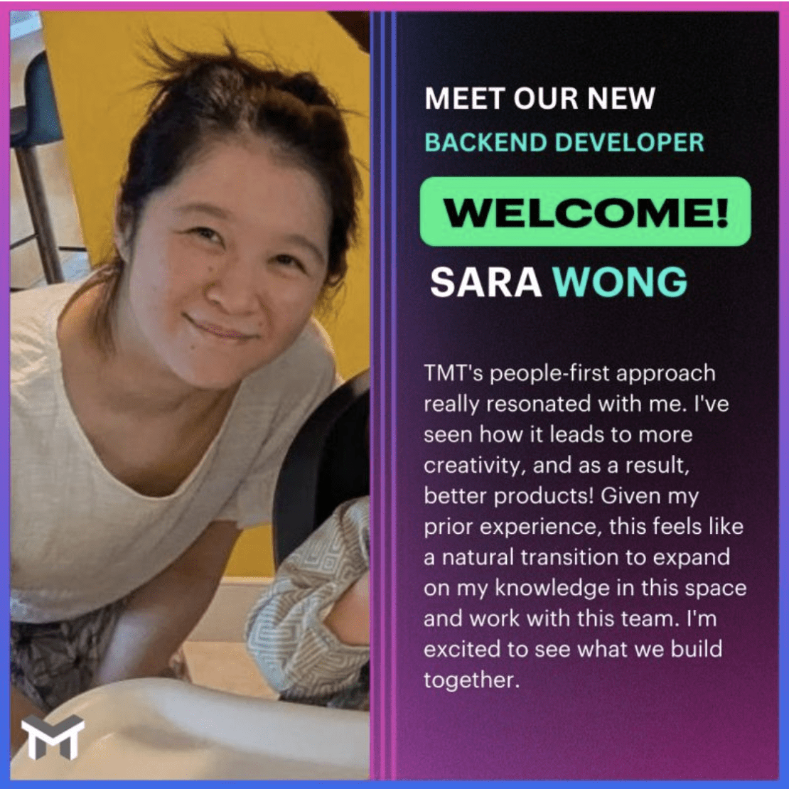 π Join us in welcoming Sara Wong to the TMT Insights engineering team!